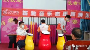 為了讓老人們更好地參與到音樂(lè)中來(lái),我們還特意安排了一個(gè)互動(dòng)環(huán)節(jié)。我們讓老人們體驗(yàn)了大琴,并邀請(qǐng)他們嘗試演奏。許多老人都非常積極地參與其中,有的還現(xiàn)場(chǎng)即興表演了一段敲擊樂(lè)才藝。